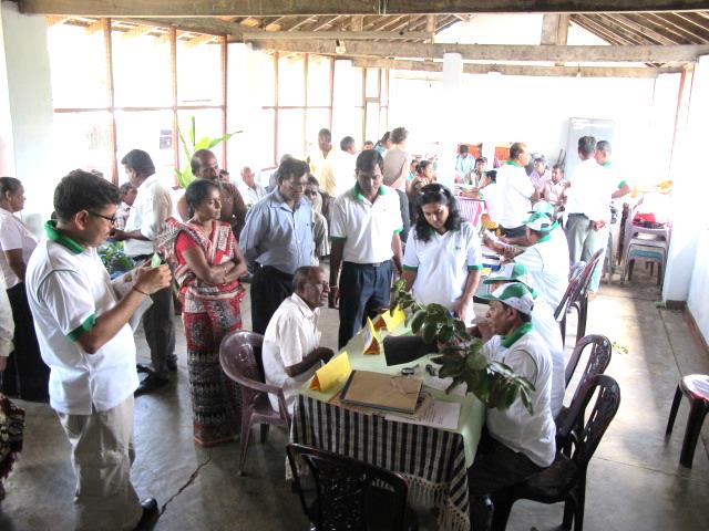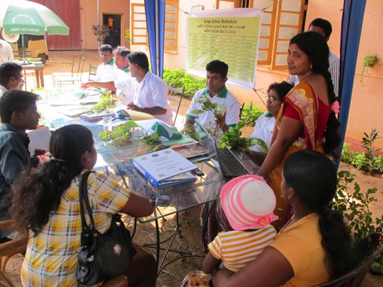 - A plant clinic in operation at a community centre in Anuradhapura District. Three teams of plant doctors (government extentions workers), each focus on a different category of crops, examine the sick plants and provide advice. This plant clinic can sometimes have more than 100 farmers at a single session. (Photo Credit: A. Rehman, CABI)