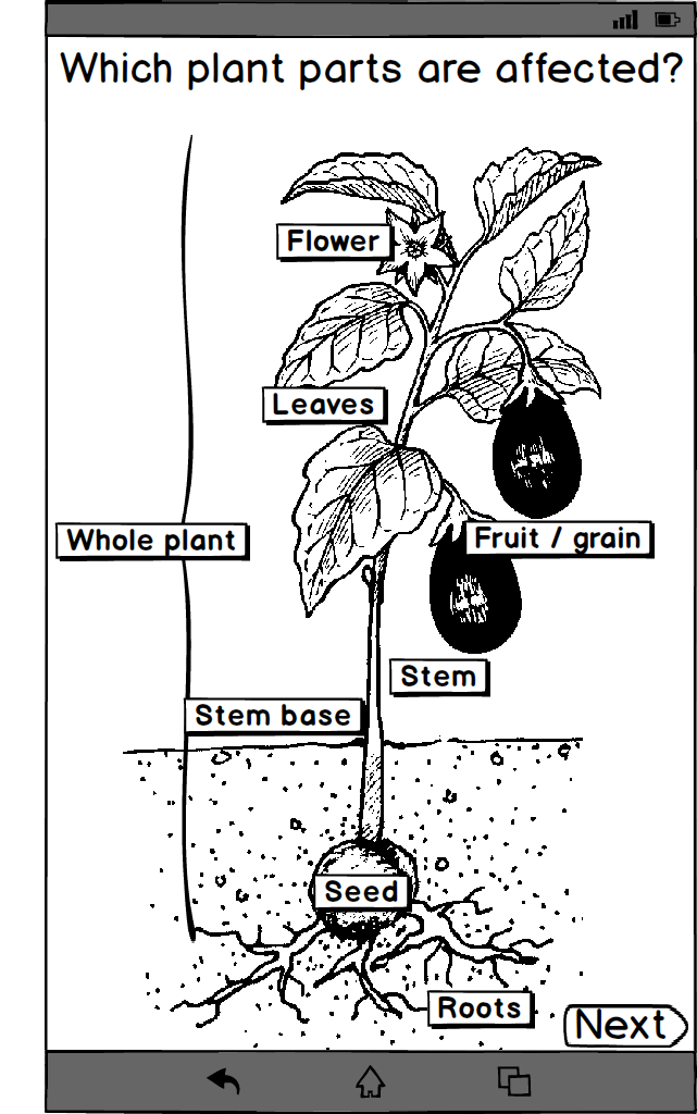 The Plantwise e-plant clinic pilot has been running in Kenya for a year, and similar pilots are due to be started in Rwanda, India and Sri Lanka this year. We have been using an off-the-shelf data collection app to test the e-plant clinic concept and are now investigating the option of designing our own bespoke app. In order to investigate user requirements of the plant doctors, we have created some wireframes of how the data collection app might look.