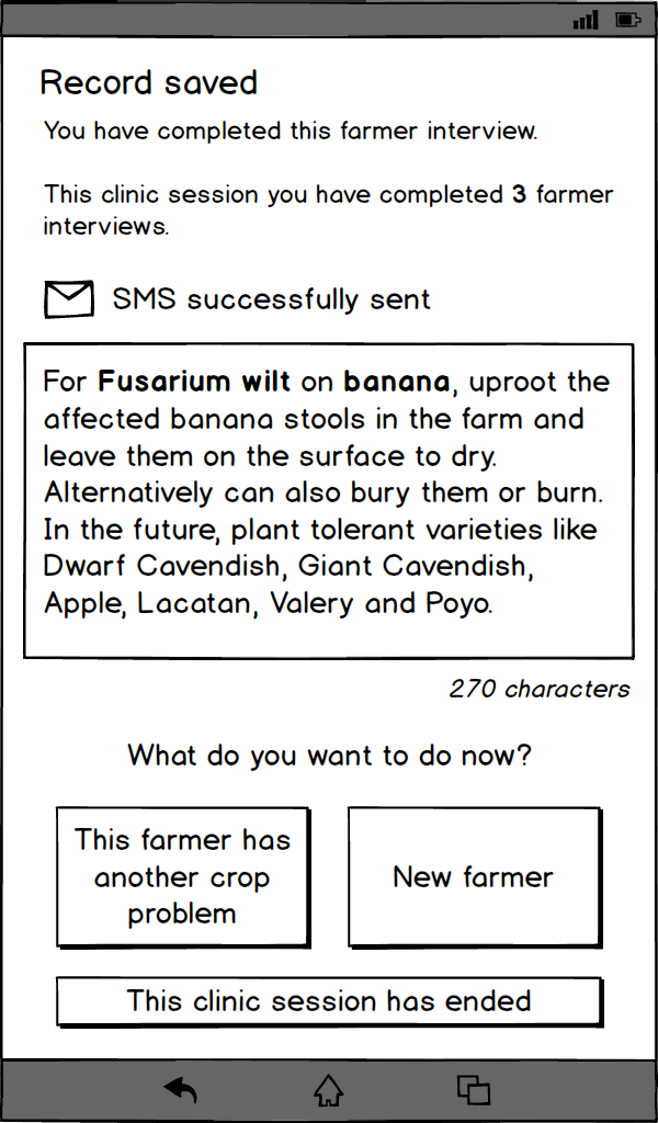- The screen that might show once a plant doctor has sent an SMS recommendation to the farmer
