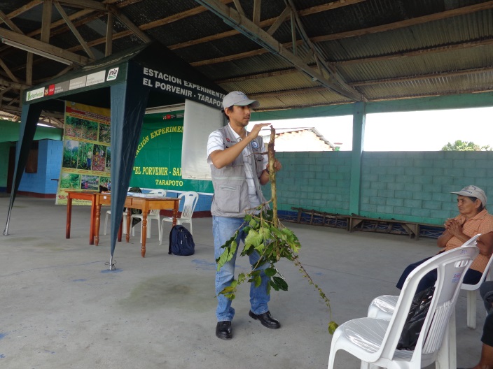 In Tarapoto region, plant doctors Edison Hidalgo and Patricia Orihuela provide technical assistance and advice on coffee production at the Experimental Station El Porvenir (INIA). During this clinic session, coffee growers have received recommendations on pest and disease management, including coffee rust (Hemileia vastatrix), nematodes (Meloidogyne sp.), leaf spot Cercospora coffeicola and anthracnose (Colletotrichum spp.).