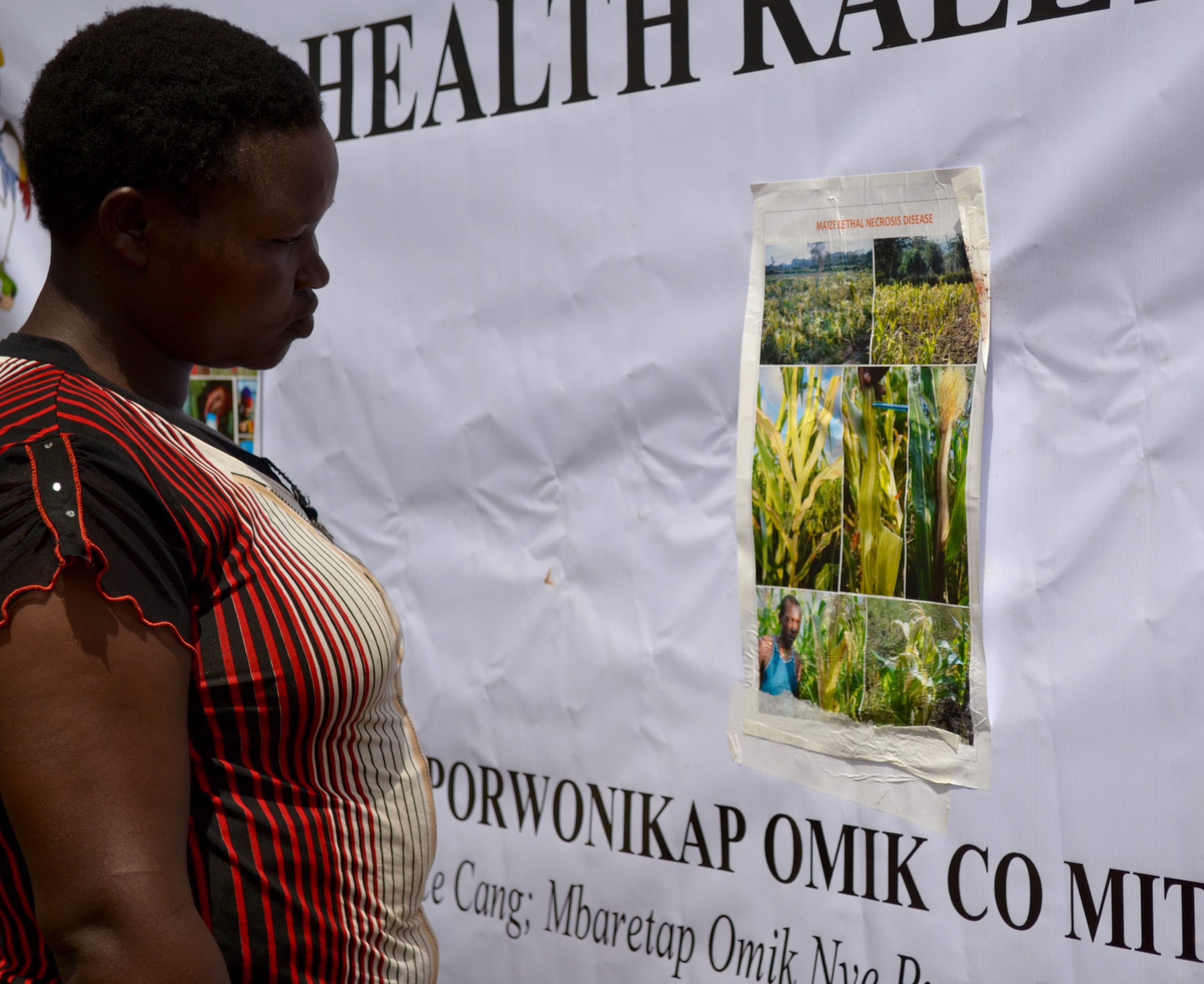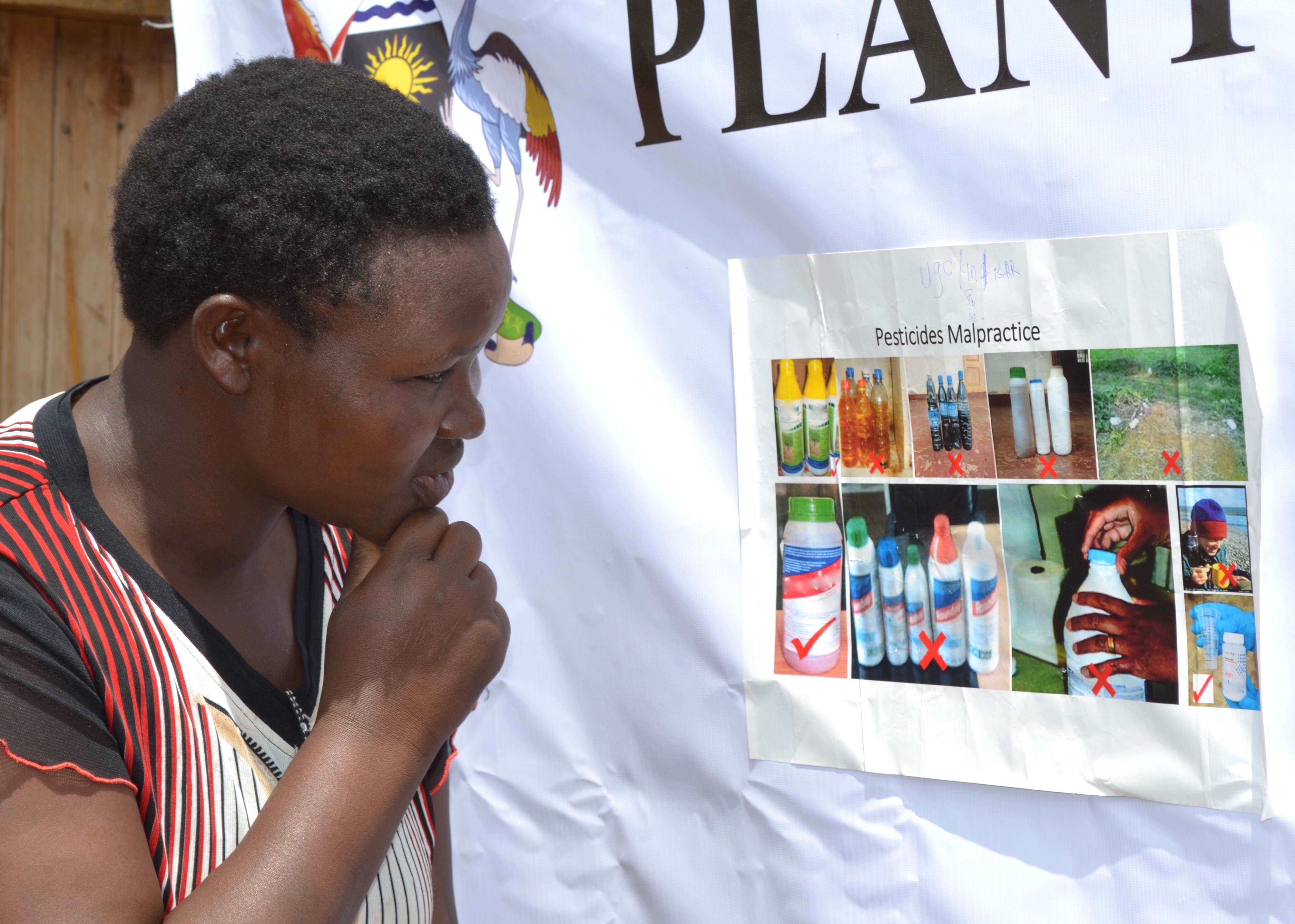 - Betty Seyekwo studies a pesticide malpractice poster after the plant health rally