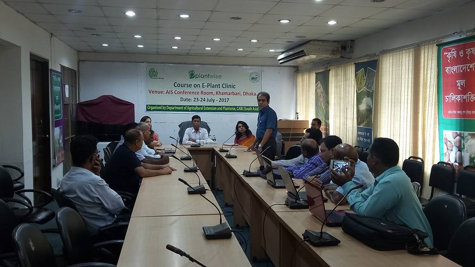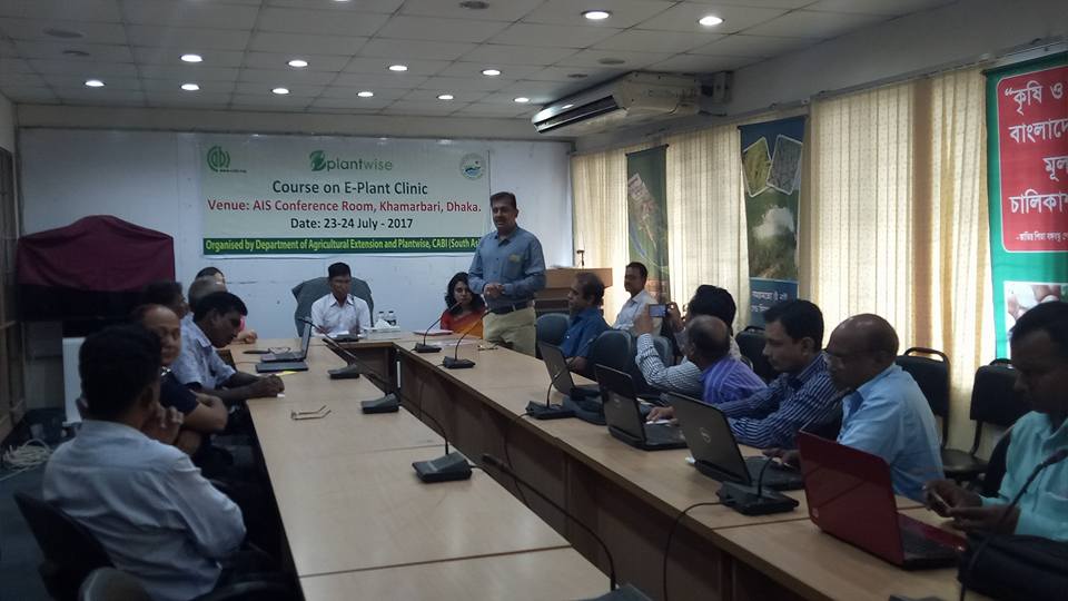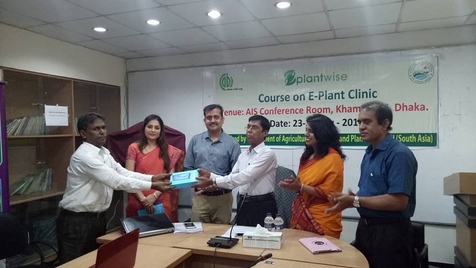 Plantwise programme was launched in Bangladesh with Plant Protection Wing (PPW), Department of Agricultural Extension (DAE) in 2015 after signing MOU with Ministry of Agriculture and Economic Relations Division of Ministry of Finance. The programme initially started with establishment of 10 plant clinics in 5 districts and is gradually scaled up to 30 plant clinics in 10 districts now. 24 July marked the launch of e plant clinics pilot in Bangladesh with the training of 10 plant doctors. In order to ensure smooth data flow from plant clinics and test new innovative ICT technologies in the ongoing plant clinic approach, tablets were distributed to the plant doctors for data collection. The program was inaugurated by Dr Amitav Das, Director (PPW), Md. Rezaul Islam, Deputy Director (IPM) and Arefur Rahaman (PPW) by distributing tablets to the participants. 10 active plant doctors who were regularly recording and submitting clinic data were chosen for this e plant clinic training.