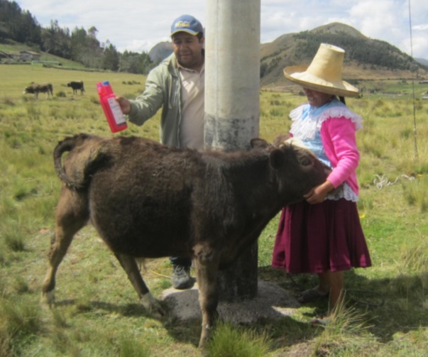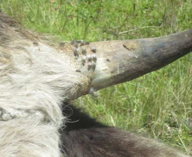 El día de la visita Fernando y Marieta trabajaron con 20 agricultores, mostrando el uso de baculovirus (insecticida biológico) para controlar la polilla de la papa en almacén. Luego de culminar la labor los agricultores hablaron de su preocupación por las moscas que atacan a los cuernos del ganado vacuno. Todos fueron a los lugares de pastoreo para verificar el problema, y de hecho, vieron que las moscas atacaban abundantemente en todo el cuerpo de los animales especialmente en los cuernos. Con un ataque así los animales no podían alimentarse con tranquilidad, se mostraban nerviosos y perdían peso.