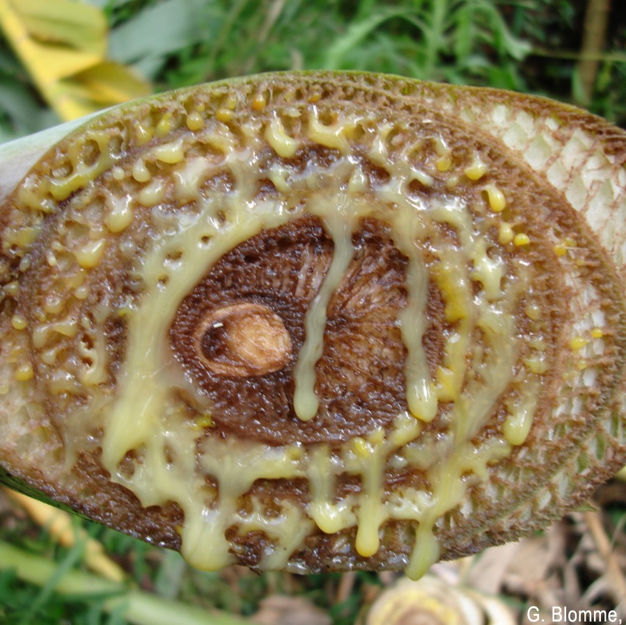 - Oozing of creamy to yellow bacterial fluid from inside the banane