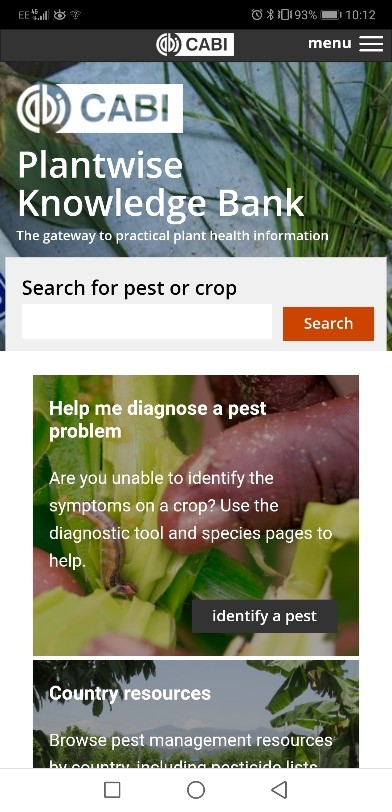 - Mobile responsive Plantwise Knowledge Bank homepage (© CABI)