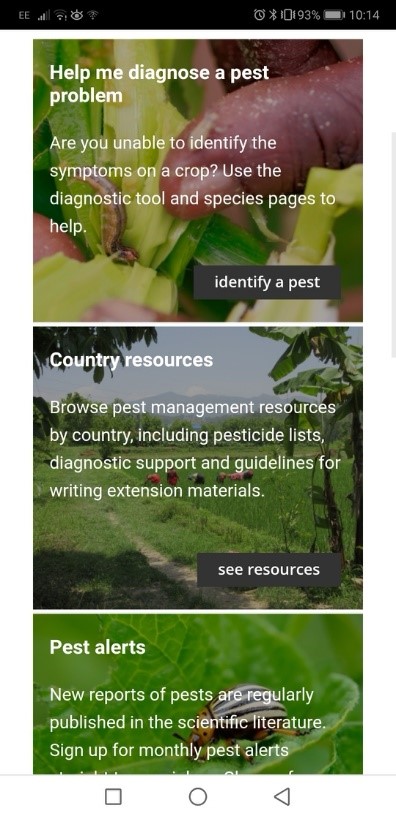 Instead of country landing pages, users will find country resource pages; the sleek design makes it easier to navigate and find all the necessary information: crop variety lists, pesticide lists, diagnostic field guides and plant health websites relevant to that country.