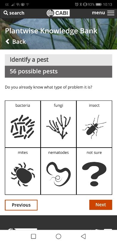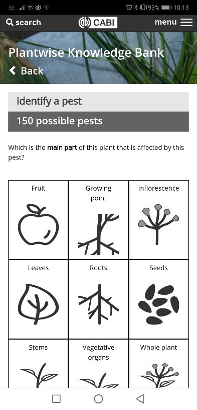 - Mobile responsive Plantwise Knowledge Bank Identify a pest page (© CABI)