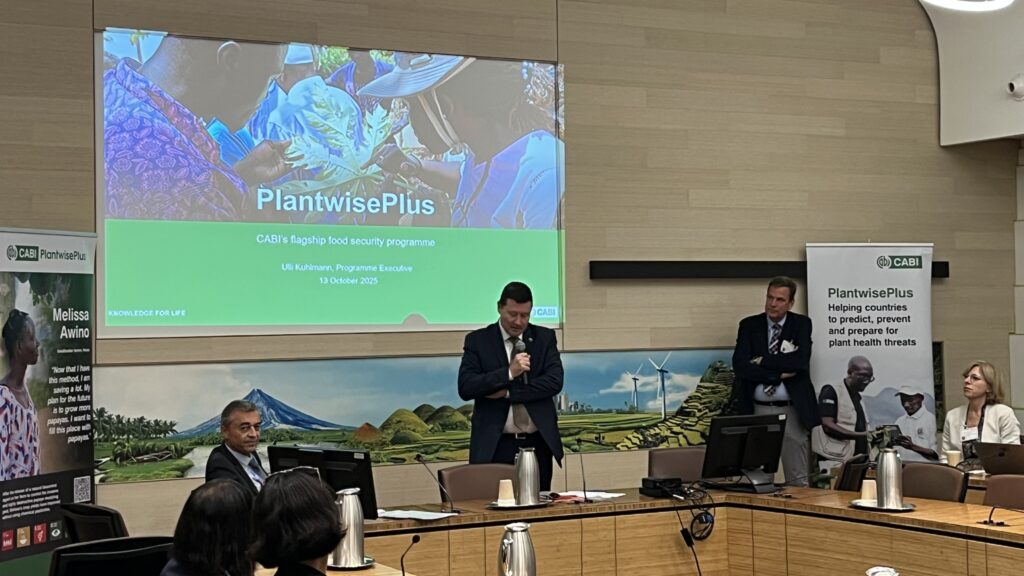 On 13 October 2025, PlantwisePlus and its core donors co-hosted a networking reception at the Food and Agriculture Organization of the United Nations (FAO) headquarters in Rome to celebrate five years of the programme. Following the FAO’s Science and Innovation Forum, diplomats from countries across the global North and South, FAO colleagues, and agricultural researchers came together to reflect on the programme’s achievements and ambitions over the next five years.