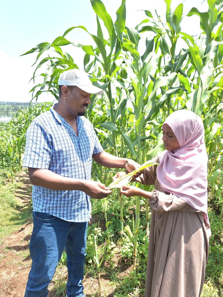 CABI’s Negussie Efa with a farmer in Ethiopia (Image: Negussie Efa, CABI)